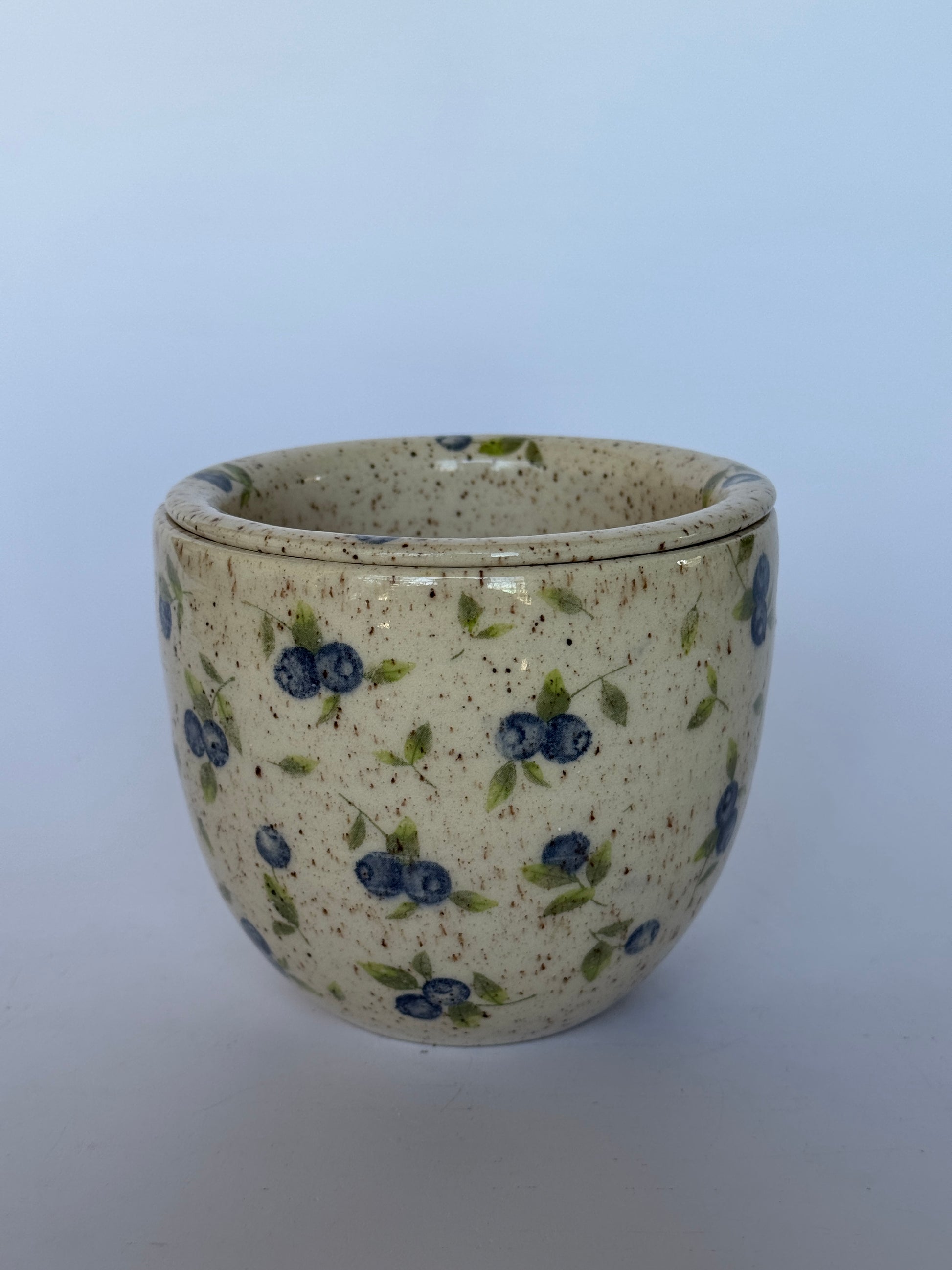Material: Blix clay with transparent glaze and underglaze blueberry design